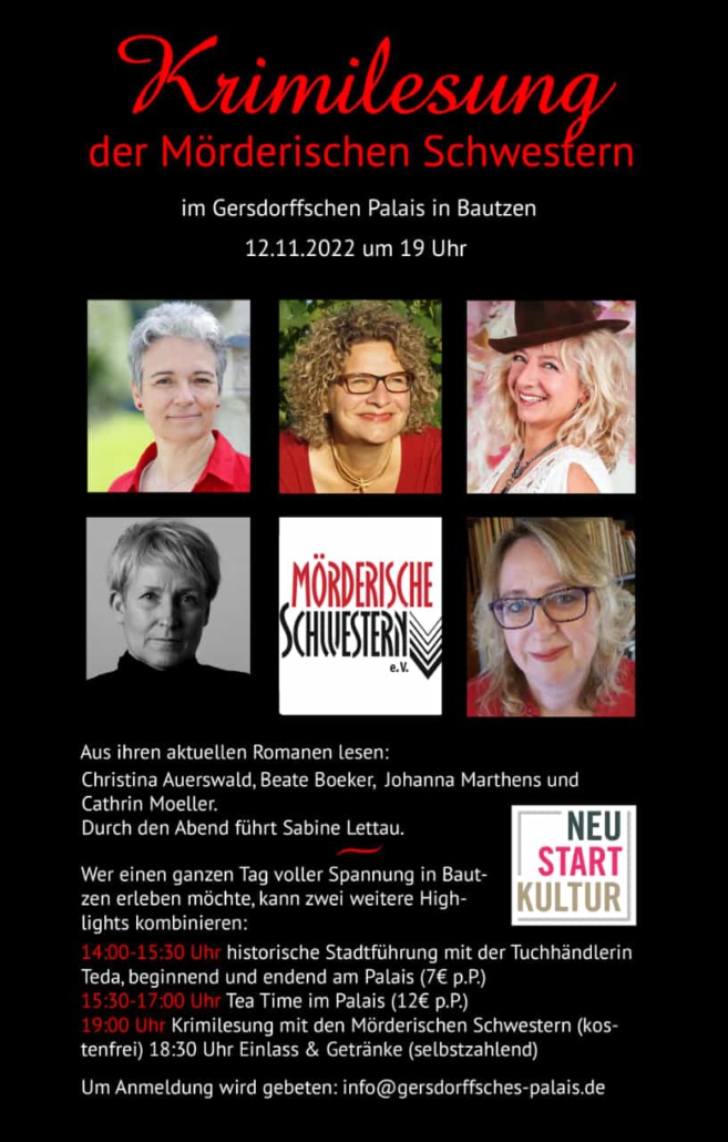 sind Krimi-Frauen! Viele meiner Romane sind historische Kriminalromane, daher bin ich Mitglied in dieser Vereinigung. Es macht besondere Freude, in der Region Sachsen mit anderen Schriftstellerinnen zusammenzuarbeiten, die Schwestern sind und die gleiche Leidenschaft haben wie ich.