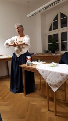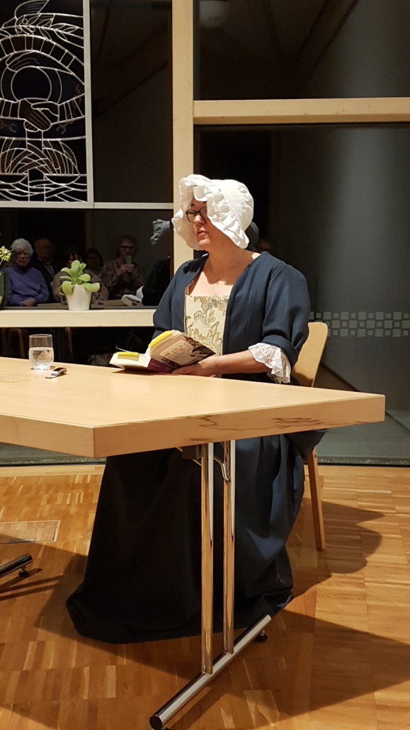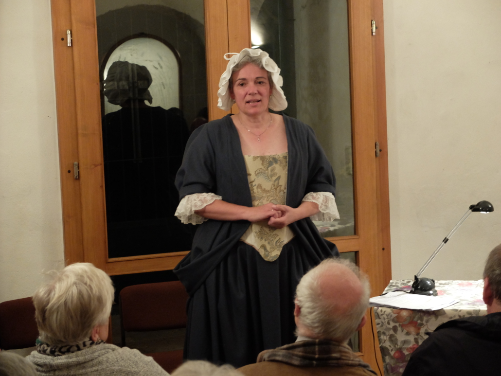 ist eine Möglichkeit, den Zuhörern das Geschehen in einer früheren Zeit näherzubringen. Wie gut wärmen die Kleider? Wie schwer sind sie? Wie wurden sie hergestellt und gereinigt? Alls das regt zu Geprächen an und lässt uns tiefer eintauchen.